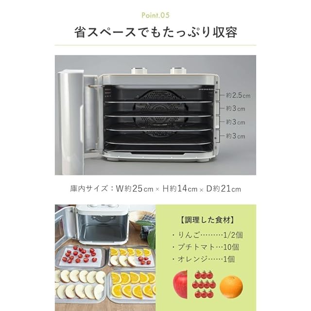 温風が庫内を循環させ、食材をムラなく乾燥させます。