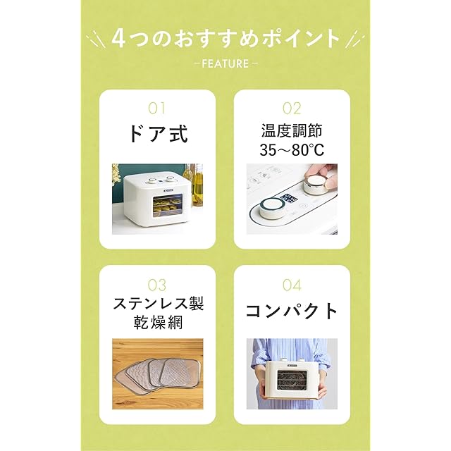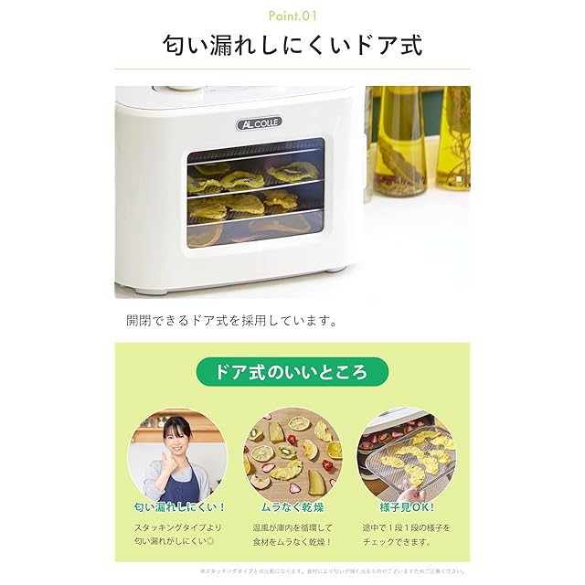 AL COLLE(アルコレ) ドライフードメーカー ADMT400W【日本メーカー】ドア式 4段 低温35℃ 高温80℃ 発酵モード フードドライヤー ドライフルーツメーカー 野菜乾燥 食品乾燥機 ジャーキー ペットフード 無添加おやつ 無添加ジャーキー 干し芋 ビーフジャーキー おつまみ レシピシート付き