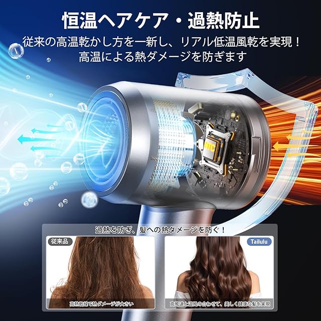 【安全品質の徹底追求&1年安心】 ▼PSE認証済み+温度過昇防止装置 ▼12ヶ月長期+1年間メーカー延長(合わせて2年間!!)Tailuluは購入日から安心の1年間のアフターサービスを提供しています。万一、製品使用故障|交換について「アカウントサービス」→「注文履歴」→「販売元」→「質問する」でお気軽にお問合せください。【パッケージ内容】ドライヤー本体*1、集風ノズル*1、日本語取扱説明書*1.【高級なプレゼント】速乾プロ仕様のヘアドライヤーは機能だけでなく、パッケージも高級感あり、母の日、敬老の日、誕生日、クリスマスや新年など大切な方へのプレゼントに最適。