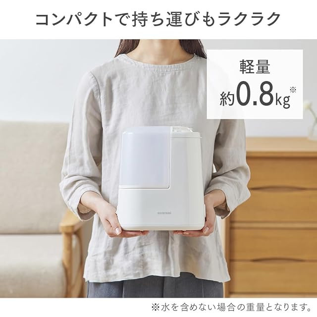 ◆加熱した水で長時間加湿するから衛生的。寝る前に給水すると朝までお部屋がしっかり潤います。<br>コンパクトなので寝室への持ち運びも軽々。