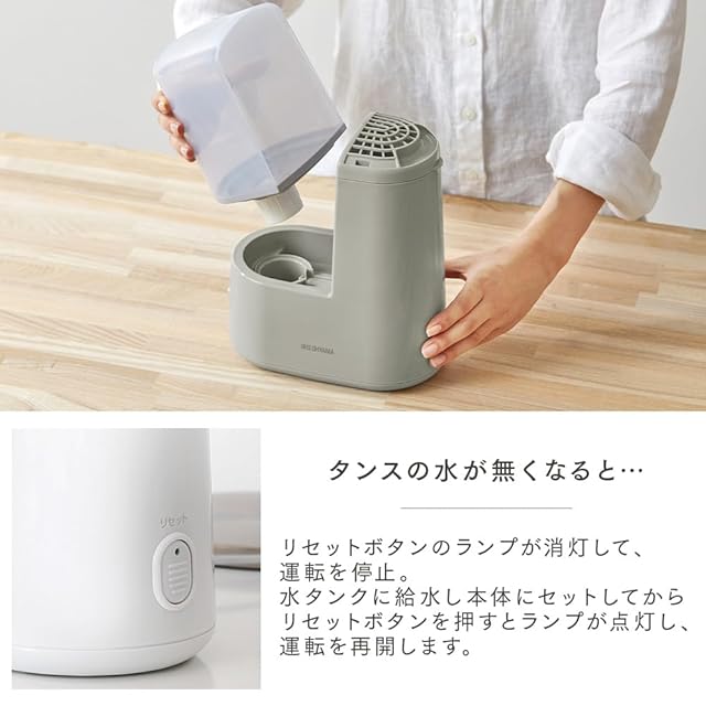 アイリスオーヤマ 加湿器 スチーム式(加熱式) 加湿量 120ml タンク容量 1.3L ~3畳 11時間連続加湿 アロマ対応 小型 卓上 デスク用 AHM-H12B-H ミストグレー