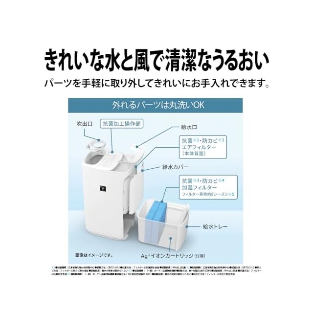 主な機能:●温度・湿度のWセンサー ●静音運転 ●プラズマクラスター空気浄化運転 ●水位表示ランプ ●湿度表示ランプ ●お手入れランプ ●切タイマー ●フィルター乾燥 ●転倒自動停止装置