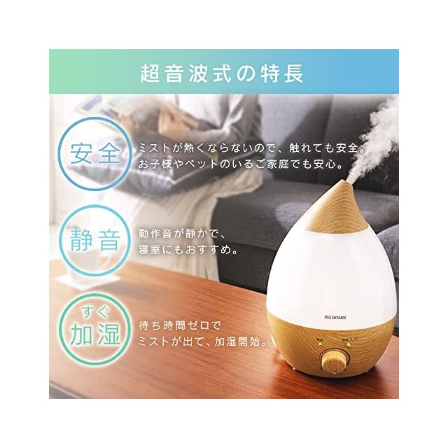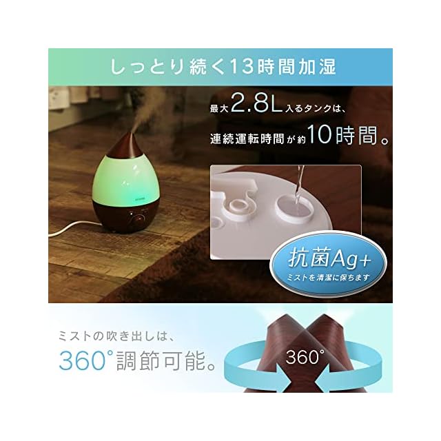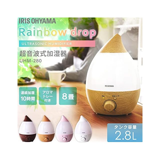 アイリスオーヤマ 加湿器 大容量 超音波式 加湿量 280ml タンク容量 2.8L 8畳 10時間連続加湿 アロマ対応 しずく型 卓上 デスク用 UHM-280SM-T ナチュラル