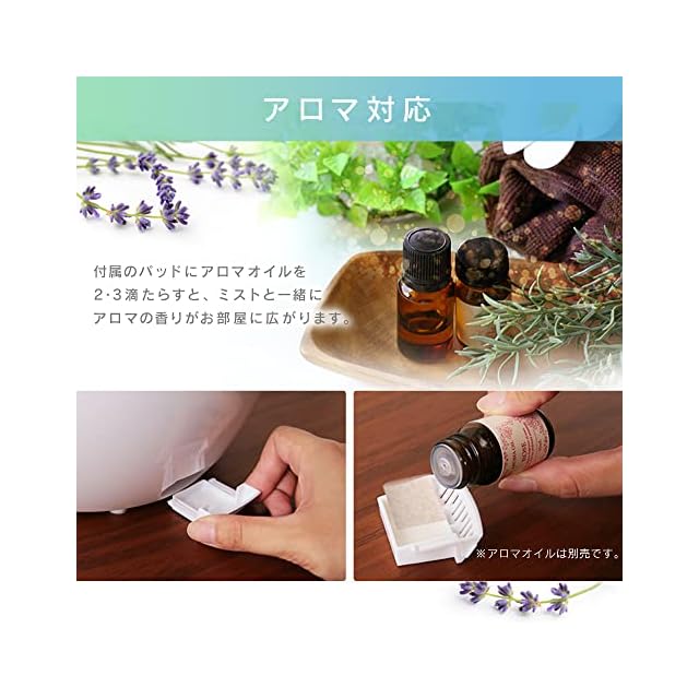 【アロマ対応】付属のパッドにアロマオイルを2・3滴たらすと、ミストと一緒にアロマの香りがお部屋に広がります