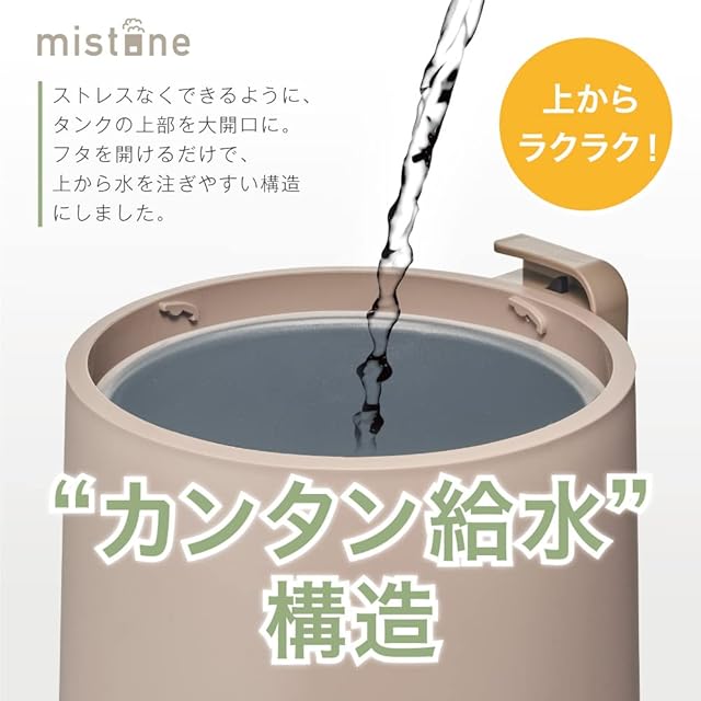 広口容器でお手入れカンタン。大きなレバーで蓋が外しやすい。上から水を注ぐカンタン給水方式。
