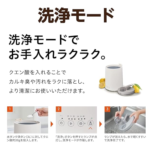 洗浄モード搭載。クエン酸を入れてボタンを押すだけのカンタンお手入れ。