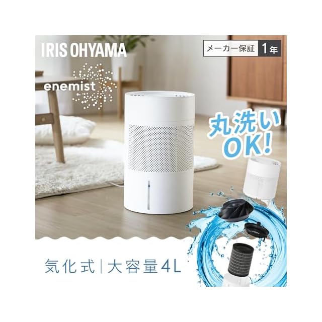 アイリスオーヤマ 加湿器 気化式 加湿量 550ml タンク容量 4L 分解丸洗い 省エネ 上から給水 ヒーターレス enemist(エネミスト) AHM-MVU55A-W ホワイト