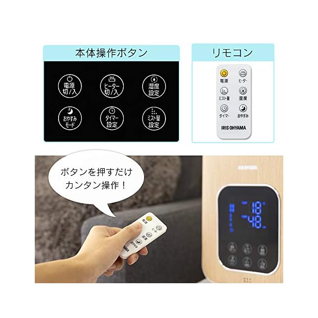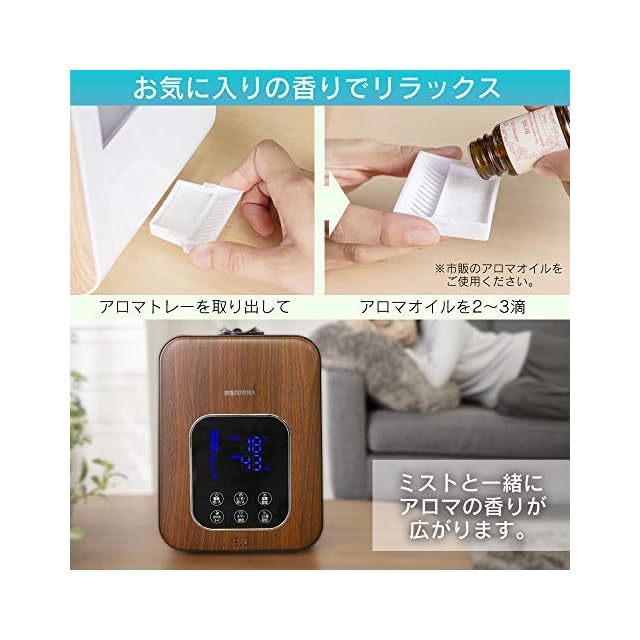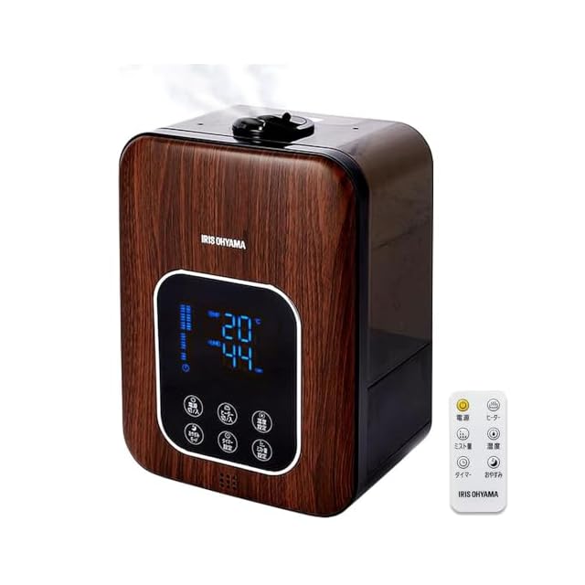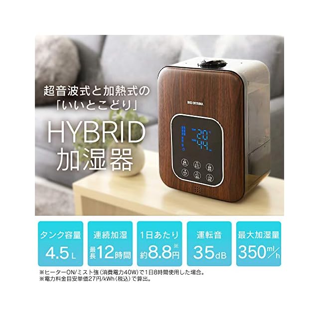 アイリスオーヤマ 加湿器 超音波式 スチーム式(加熱式) ハイブリット式 加湿量 350ml タンク容量 4.5L 10畳 12時間連続加湿 リモコン付 デジタル表示 ミスト3段階 湿度設定可 切タイマー付 卓上 デスク用 PH-UH35-MD 木目ブラウン