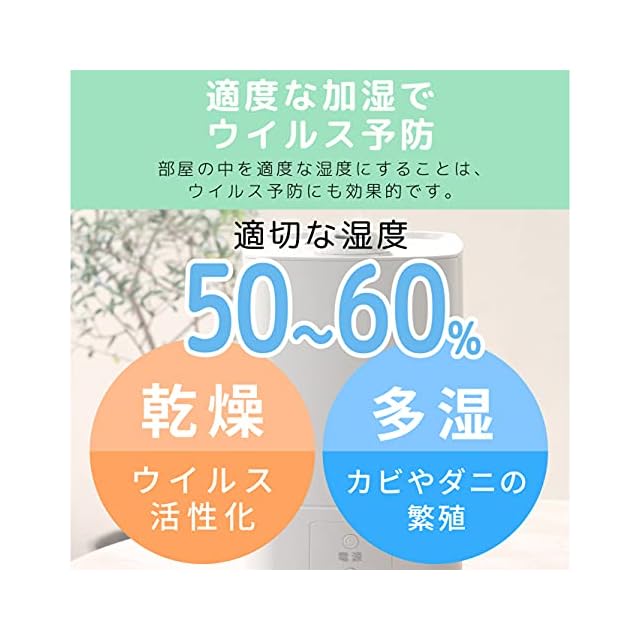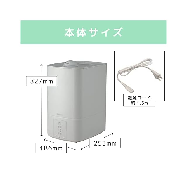 加湿能力:(強)約300ml/h、(弱)約180ml/h