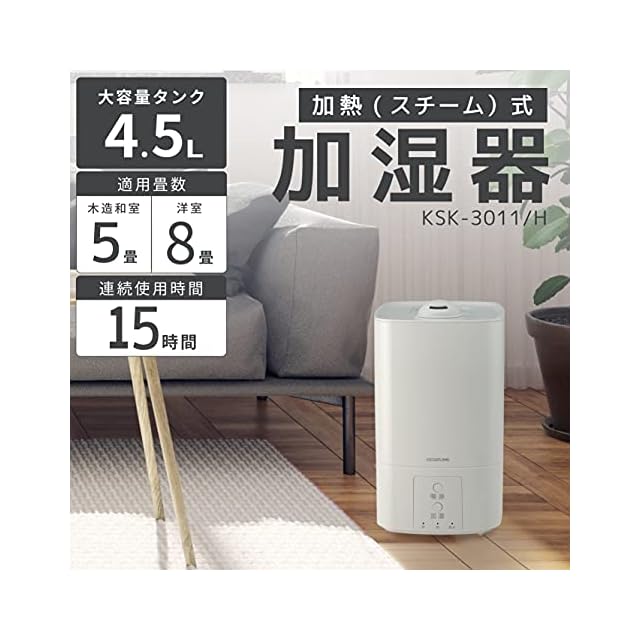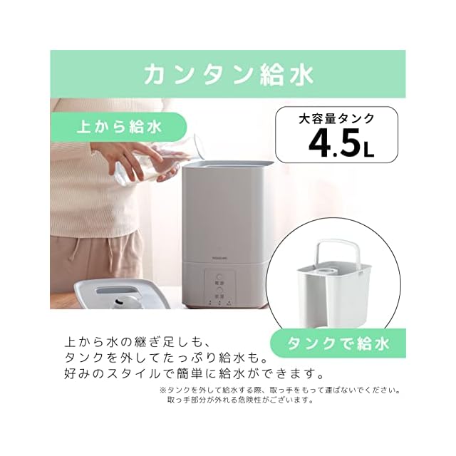 商品名:コイズミ 加湿器 大容量 スチーム式 加熱式 4.5L 上から給水 見やすい操作ボタン グレー KSK-3011/H