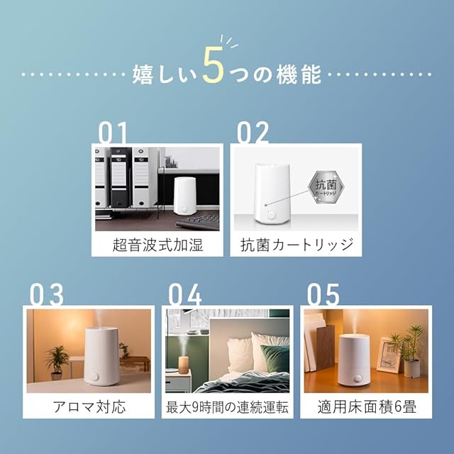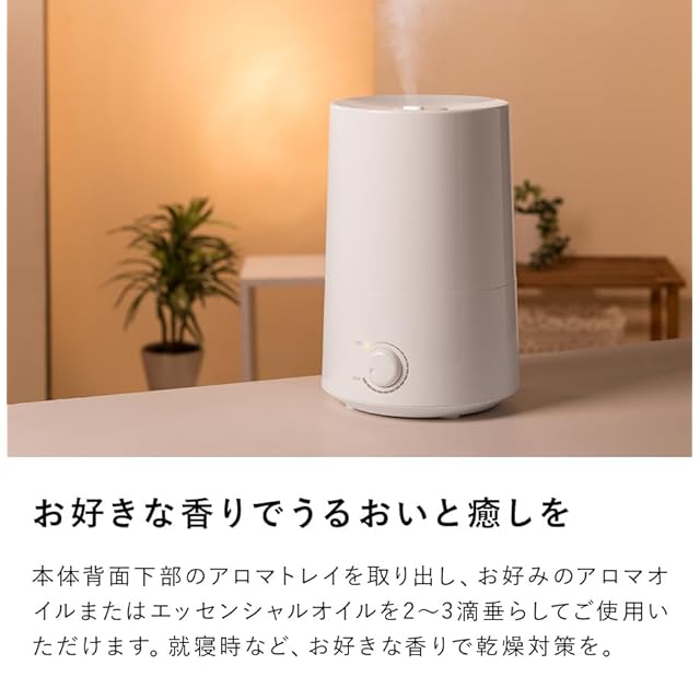 スリーアップ アロマ 超音波加湿器 2.3L 最大加湿量250ml/h 6畳 フロートM ホワイト HF-T1622WH