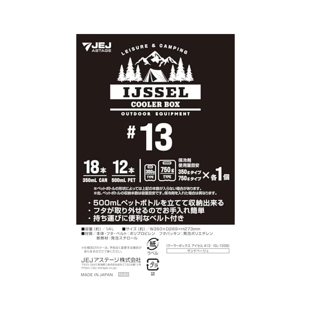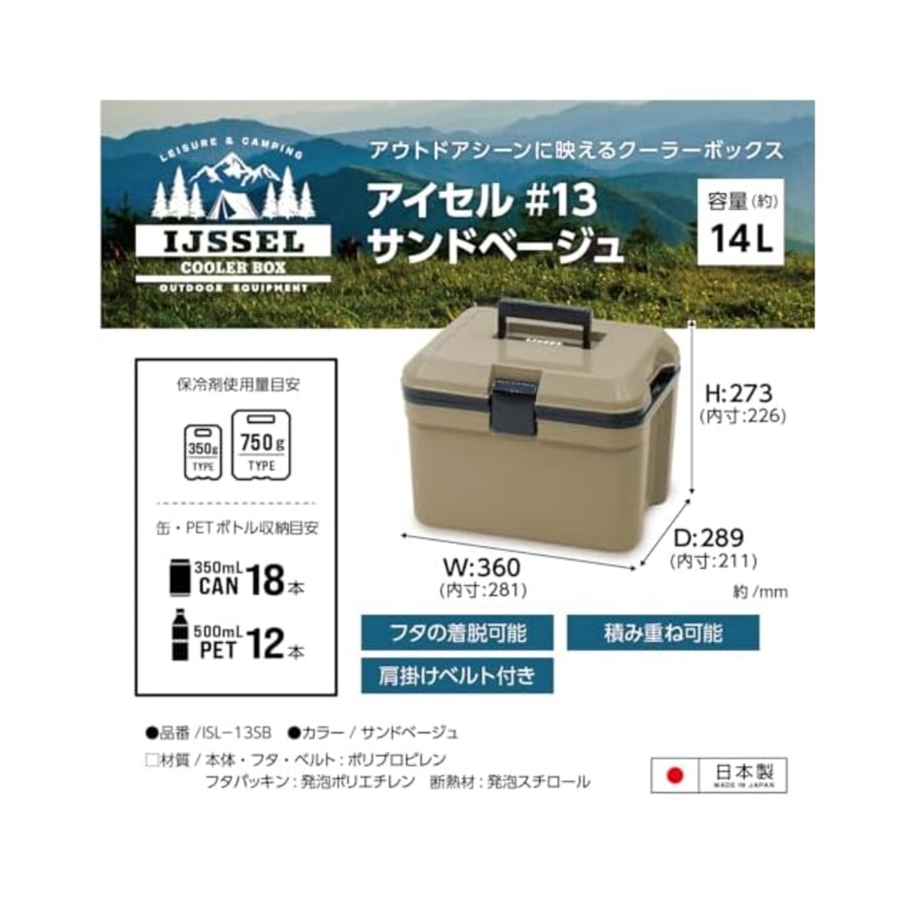 JEJアステージ アウトドアシーンに映える クーラーボックス アイセル サンドベージュ 14L 日本製[幅360×奥行289×高さ273mm] 蓋が外せてお手入れ簡単 保冷 軽量 積み重ねしやすい ランチボックス 部活 アウトドア お出かけ レジャー スポーツ ショルダーベルト付