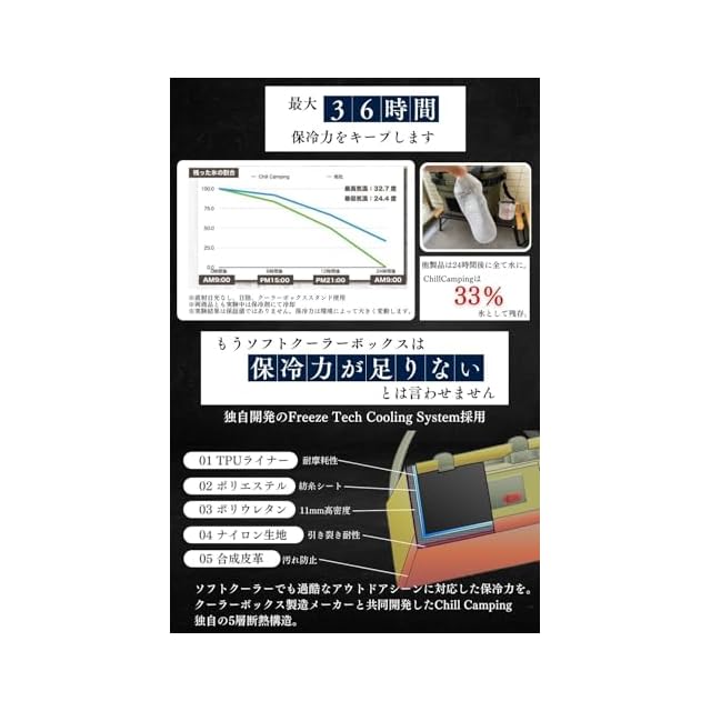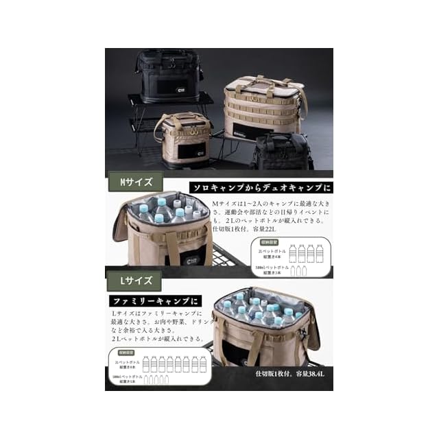 ChillCamping (チルキャンピング) クーラーボックス ソフトクーラー 保冷バッグ クーラーバッグ アウトドア キャンプ (ブラックLサイズ)