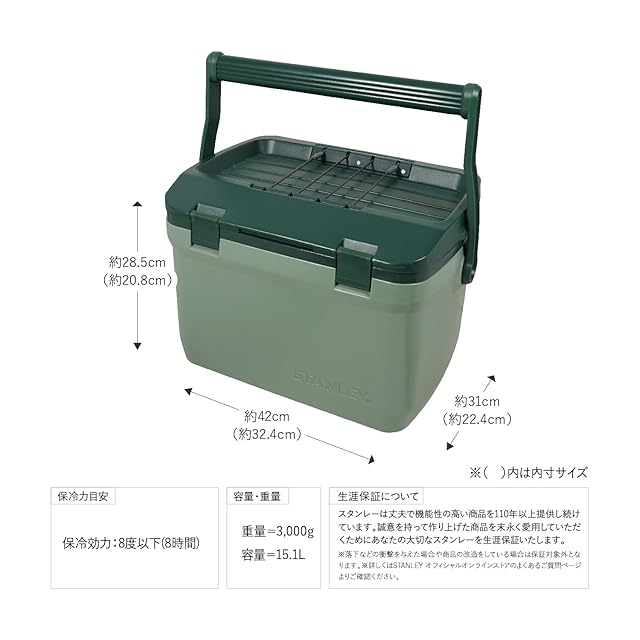 STANLEY(スタンレー) クーラーボックス 15.1L スタンレーグリーン 保冷 長時間 頑丈 座れる アウトドア キャンプ 釣り レジャー (日本正規品)