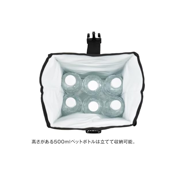 ■開閉がシンプルなロールトップ式の小型ソフトクーラー「ランチクーラー」。■500mlのペットボトルが6本立てて収納可能です。■背面にポケットが付いているため、小物も収納可能です。■両サイドにはカラビナやショルダーストラップなどを掛けられるループ付き