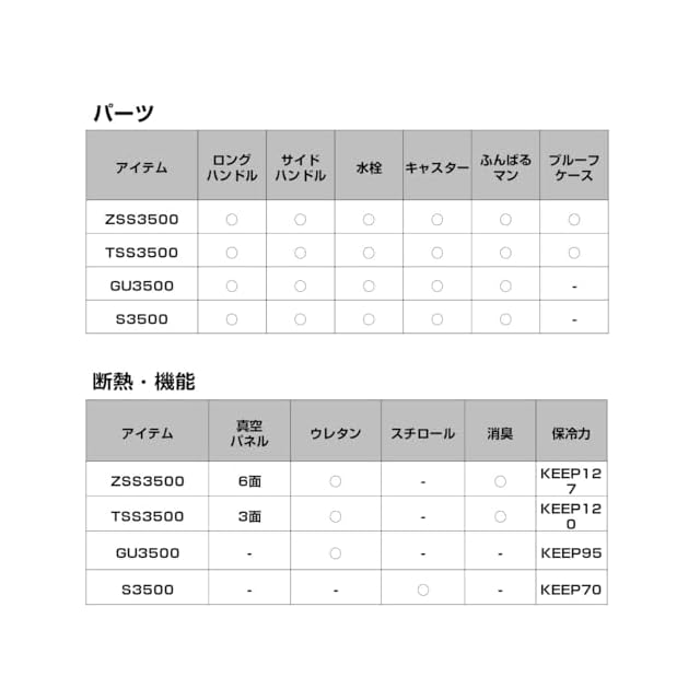 断熱材:真空パネル3面+ウレタン / 保冷力:KEEP 120