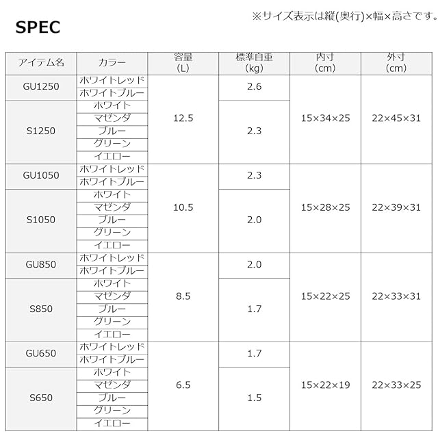 内寸(cm):15×22×19 / 外寸(cm):22×33×25