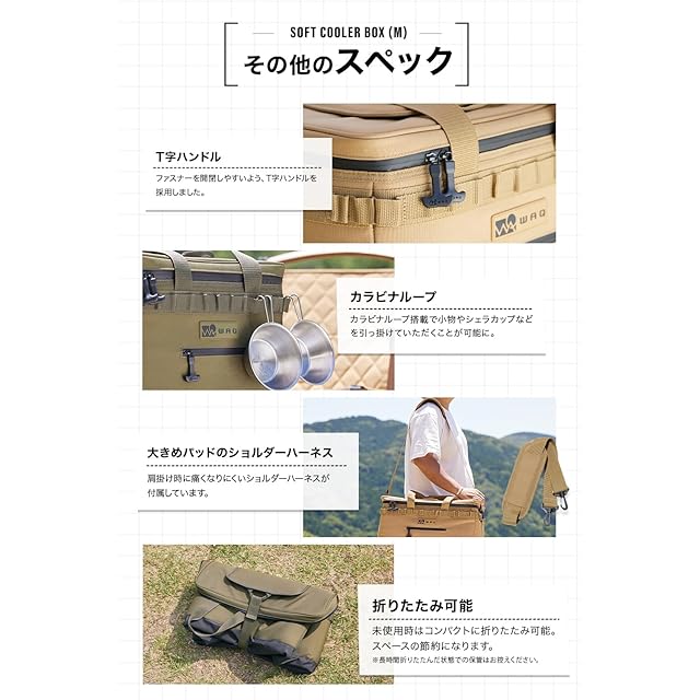 WAQ クーラーボックス (M) 42L ソフトタイプ Sサイズ Mサイズ ソロ用 ファミリー用 レジャー (Mサイズ, TAN(タン))