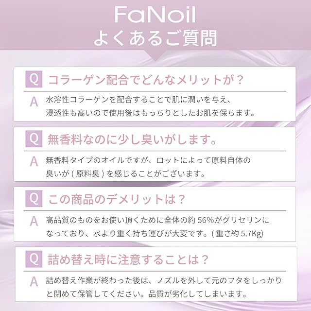 トイズファン toysfan FaNoil ファンオイル 水溶性マッサージオイル コラーゲン 5L 日本製 国産 無香料 無着色 コラーゲン配合 エステ店御用達のプロ仕様業務用マッサージオイル 大容量 水溶性 オイル