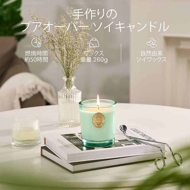 「高品質のエッセンシャルオイル」:高級エッセンシャルオイルを配合したアロマキャンドルは、燃焼中もフレッシュで自然な香りを安定的に拡散します。安全で無害、パラフィン、フタル酸エステル、パラベンを使用していないので、ギフトにも個人用にも安心してお使いいただけます。最適な香りを持続させるために、強い換気を避け、適度な広さの空間でご使用ください。