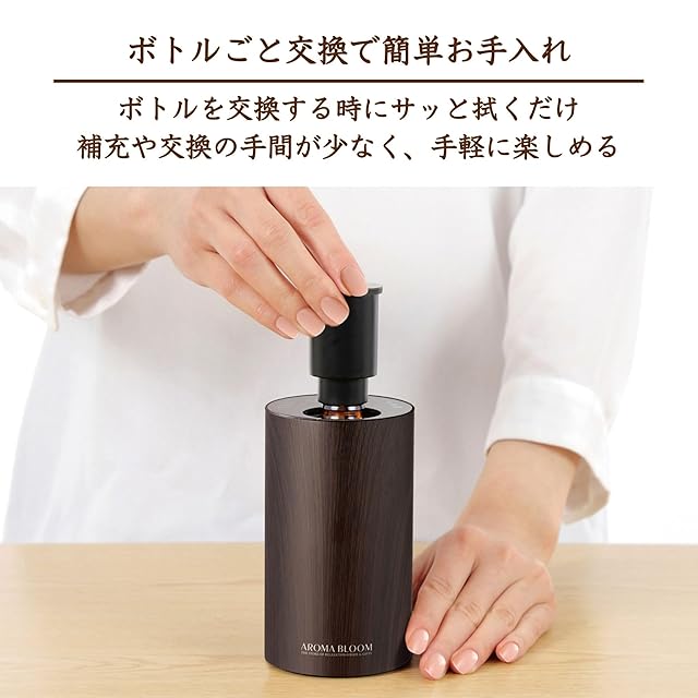 アロマブルーム リッチ アロマディフューザー WOOD 水なし ネブライザー式 車 部屋 コードレス USB充電式 ダークブラウン