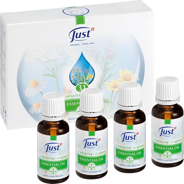 JUST(ユースト) 31ハーブオイル ナチュラル 直塗りオイル 天然成分 31種類のハーブをブレンド 肌に直接塗れるアロマオイル アロマテラピー 精油 エッセンシャルオイル (20mL X 4本)
