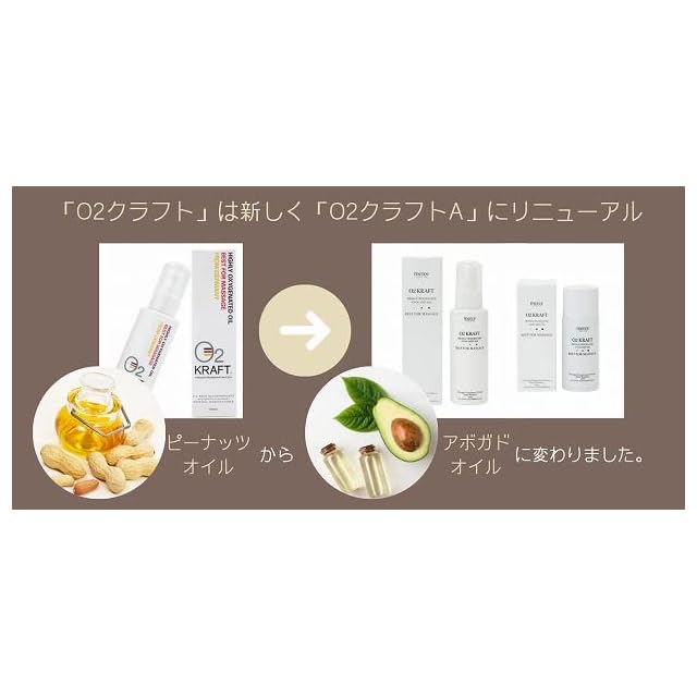 O2KRAFT A 100ml は、上質なオイルに高濃度の酸素を含有させたマッサージオイルです。