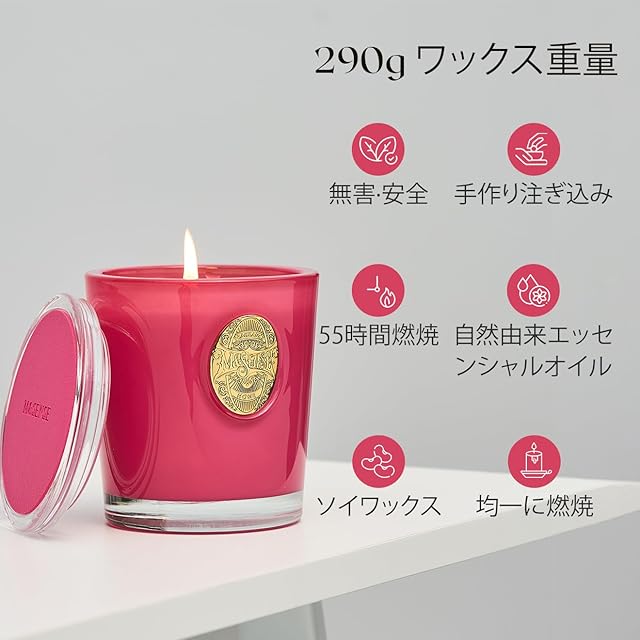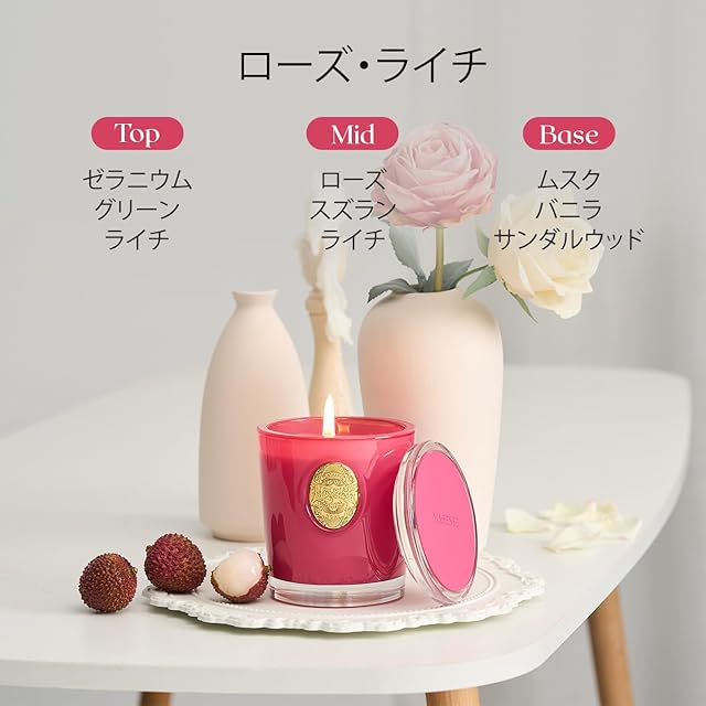 M&SENSE アロマキャンドル キャンドル ローズの香り 蓋付き 55時間 長時間 290g 花の香り ソイキャンドル おしゃれ 香薰蜡烛 癒しグッズ ホワイトデー バレンタイン 母の日 ギフト 女性向け プレゼント