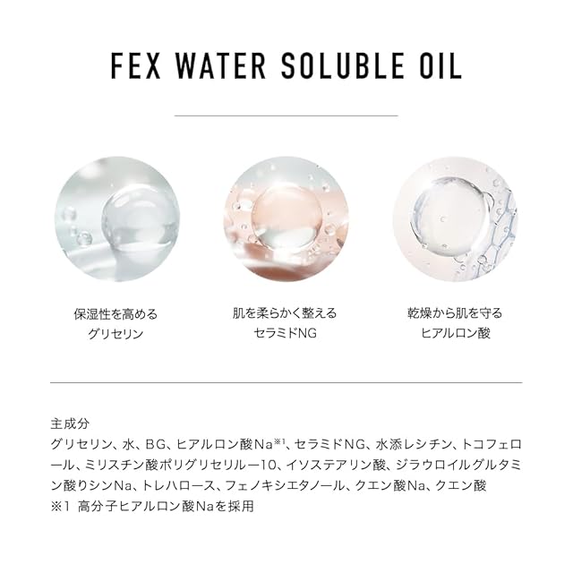 [TEXTURE / 質感]:オイルと同等の重みとトロみがあり、肌に馴染みがよく、溶け込むような伸びの良い質感です。