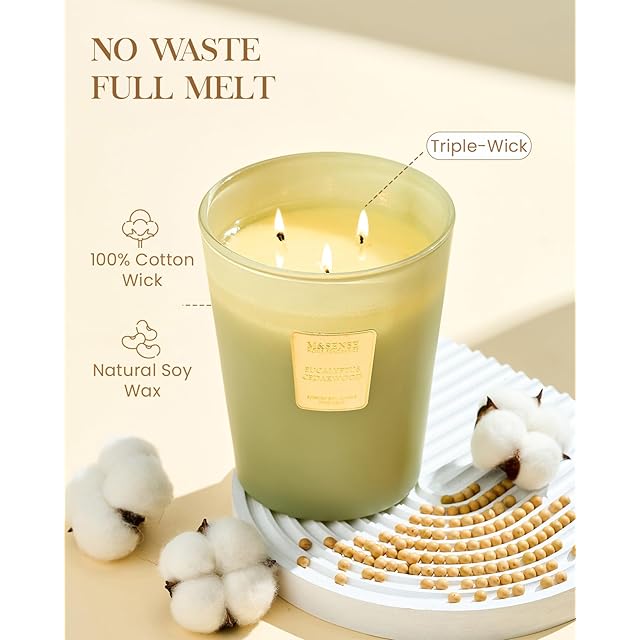 M&SENSE アロマキャンドル 大型 大容量 990g 燃焼時間150時間 3本芯 キャンドル アロマ ユーカリの香り 長時間 香り強い バスキャンドル おしゃれ 女性 リラックスギフト プレゼント ホワイトデー バレンタイン 母の日