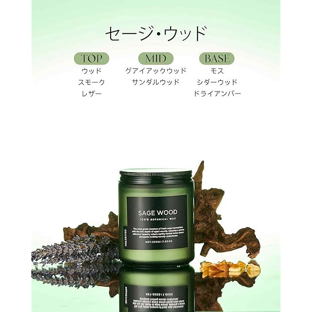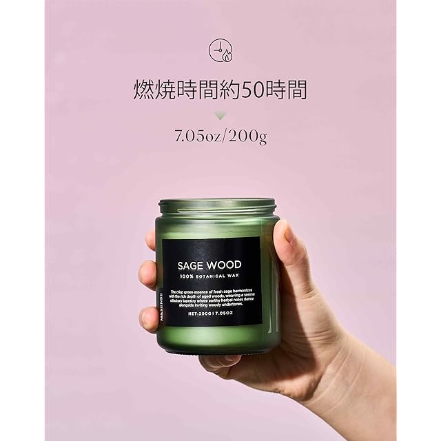 M&SENSE アロマキャンドル ミニ キャンドル セージ・ウッドの香り 燃焼時間50時間 200g ソイワックス ジャーキャンドル ホワイトデー バレンタイン 母の日 バレンタイン リラックス ギフト プレゼント