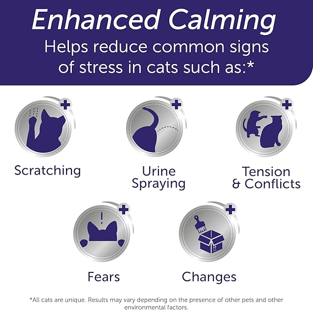FELIWAY Optimumは新しいフェロモン発見で、猫間のひっかき傷、尿の噴霧、緊張、猫間の対抗、恐怖、変化に対する反応など、猫のストレスの一般的な兆候を減らすための最高のFELIWAY回答です。