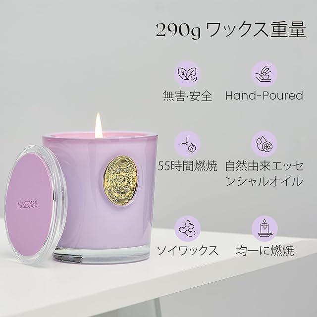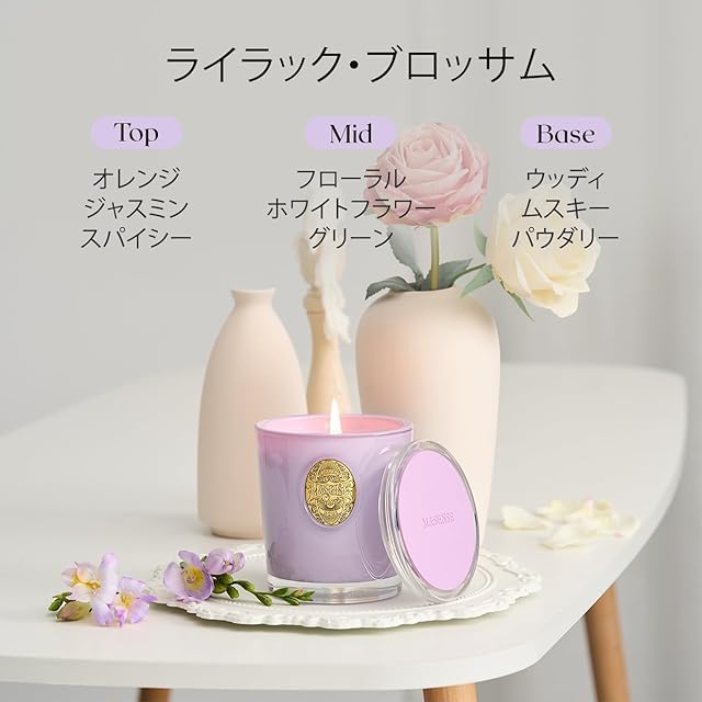 M&SENSE アロマキャンドル キャンドル ライラック・ブロッサムの香り 蓋付き 55時間 長時間 290g 花の香り ソイキャンドル おしゃれ 香薰蜡烛 癒しグッズ ホワイトデー バレンタイン 母の日 ギフト 女性向け プレゼント