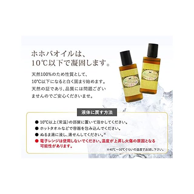 ■商品の特性上、冬場や低温(10度以下)になると凍ったり白濁する事がございます。品質には問題ありませんので、暖かい部屋にしばらく置いて常温に戻してからご使用ください。