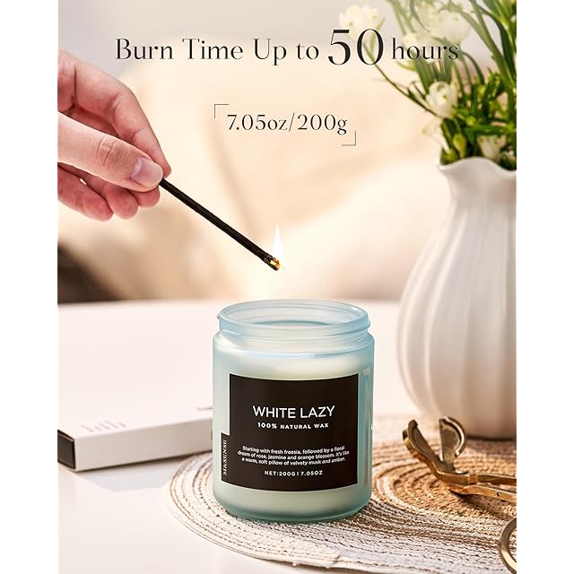 「均一に燃焼」 - 二本のリードフリーの綿芯が備わっているため、scented candleは均一でゆっくりと燃焼します。二本の芯がワックスを均一に溶かし、香りを最大限に放出し、燃焼時間を延ばします。50時間という非常に長時間の燃焼時間で、各キャンドルからより多くのリラックスと楽しみの時間を得ることができます。