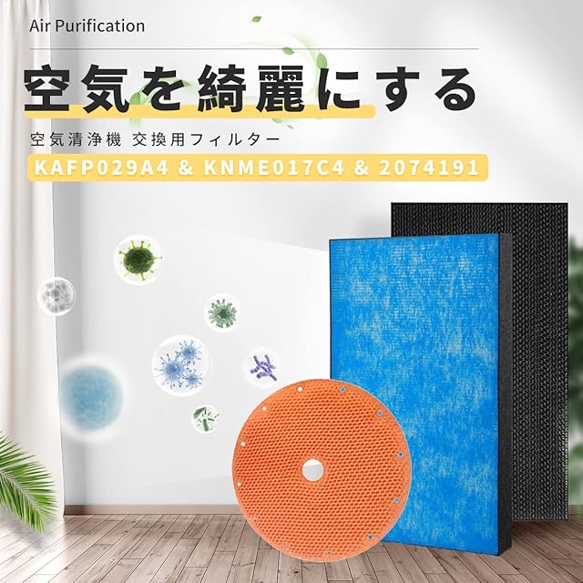 ♥製品型番♥ 空気清浄機対応 交換用フィルターセット (集じんフィルター「 KAFP078A4」+活性炭フィルター「2074191」+加湿フィルター「KNME043B4」)合計3枚入り 互換品(非純正)。