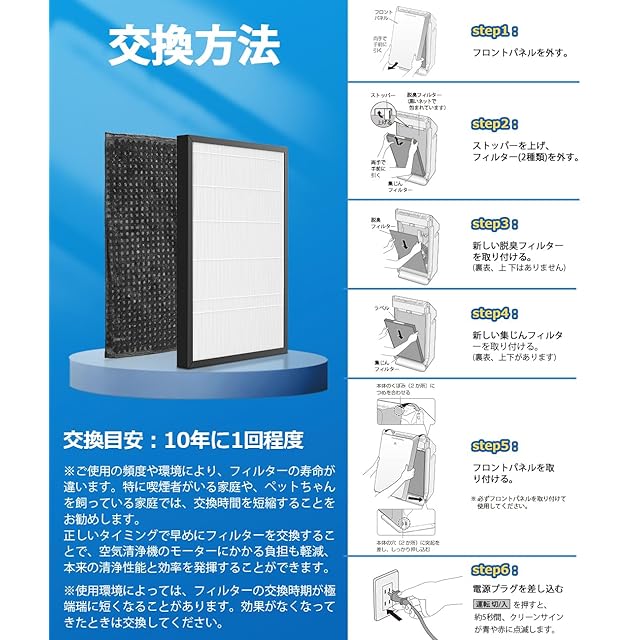 【交換の目安】約10年に1回程度。使用環境によっては、フィルターの交換時期が極端に短くなることがあります。効果がなくなってきたときは交換してください。