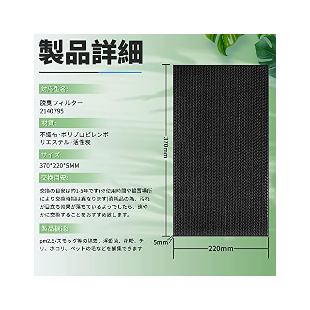 【対応品番】 空気清浄機用交換フィルター脱臭フィルター2140795 互換品
