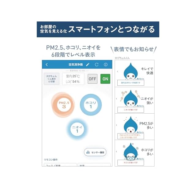 スマートフォンで空気の汚れを見える化。ぴちょんくんの表情でお知らせ。