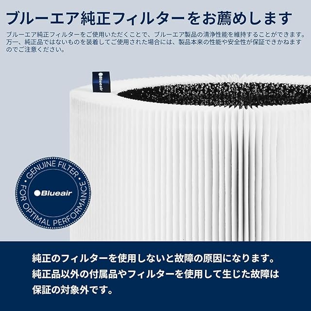 【ブルーエア純正フィルターをおすすめします】ブルーエア純正フィルターをご使用いただくことで、ブルーエア製品の清浄性能を維持することができます。万一、純正品ではないものを装着してご使用された場合には、製品本来の性能や安全性ができかねますのでご注意ください。また、純正品以外のフィルターや付属品を使用して生じた故障は、の対象外となります。