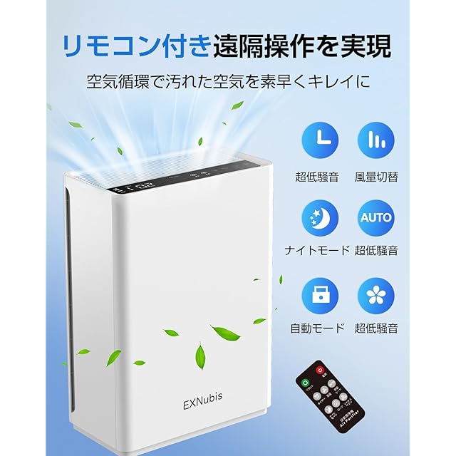 空気清浄機 HEPAフィルター付き 適用床面積37畳 PM2.5・花粉対策 空気質検知 AUTOモード 風量自動調整 静音 省エネ タッチパネル タイマー機能 空気循環 アレルギー対策 脱臭 台所 寝室 PSE認証済み リモコン付