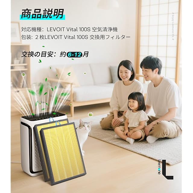 対応モデル:LEVOIT Vital 100S空気清浄機のみに対応しています。品番:Vital 100S-RF-PA(LRF-V102-YUS)ぴったりフィットする交換用フィルターにより、Vital 100S空気清浄機は最高の効率で動作し、より清潔で新鮮な空気を提供します。