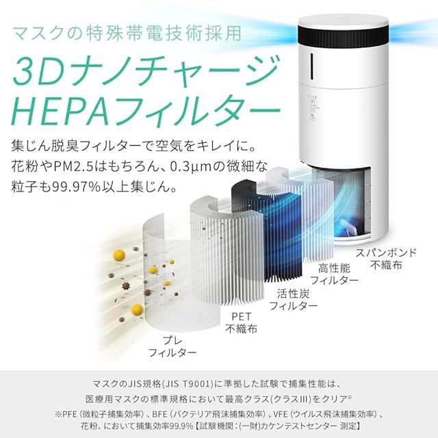 【3DナノチャージHEPAフィルター】集じん脱臭フィルターで空気をキレイに。