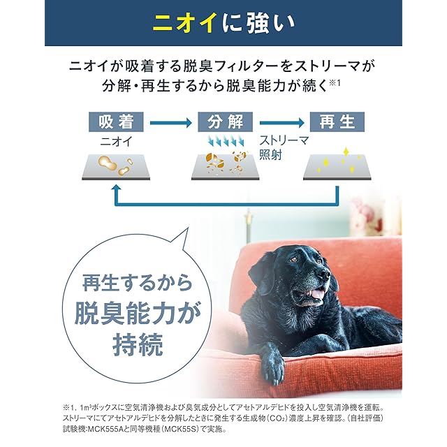 ストリーマとアクティブプラズマイオンのダブル方式で空気をキレイに。花粉、ウイルス、ニオイ、ハウスダストに強い