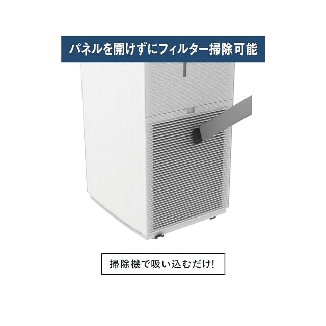 お手入れ簡単(パネルを開けずにフィルター掃除)、移動もラクラク(キャスター付き)