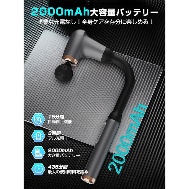 【数値表示バッテリー残量・Type-C急速充電】液晶タッチスクリーンにより、バッテリー残量と振動強度を一目で確認できます。筋膜 リリースガンの電源オン・オフや強度段階の調節は、2つのボタンで簡単に制御できます。さらに、ハイエンドな液晶ディスプレイでレベル表示やバッテリ残量も確認可能。2000mAhバッテリー内蔵で、毎日10分の使用であれば、1段階で最大60日間連続使用できます。Type-C充電式なので、充電器、パソコン、移動バッテリーなどから充電が可能です。仕事やスポーツ、家事の後でも、いつでもどこでも手軽に使用できます。ただし、電池の残量や充電環境、使用状況によって、充電時間や動作時間は変わることがあります。日々の生活を頑張るあなたに、自分専用のリラックスタイムを。自分へのご褒美としてお使いください。
