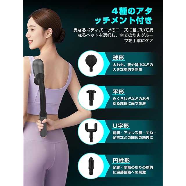 【4種類アタッチメント付き・超静音設計】リリースガンには、球形、U形、弾丸形、平形の4種類のアタッチメントが用意されており、首から足まであらゆる部位に使い分け、より高い効果を実現します。また、ミュートチップを搭載しており、動作音が45dB未満なので、早朝や夜間など、時間を気にせず使うことができます。さらに、双チュアベアリングを採用し、手振れを抑えて安定した使用が可能です。仕事中や運動中でも全くストレスなく使用できます。きんまくリリースの音が大きすぎて他人に迷惑をかけることを心配する必要はありません。洗練されたデザインと実用性の高さは、友人、上司、親戚、両親、そして高齢者にも喜ばれる理想的なギフトとなるでしょう。万が一、製品には不具合があったら、弊社までご連絡ください。アカウントサービス内の「アカウントサービス」→「注文履歴」→「販売元」→「質問する」