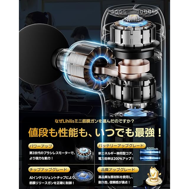 【新世代の筋膜リリースガン! 小さなボディ・驚きのパワー】Lihilis(リヒリス) "ハンディガン"が 、再び業界を席巻する!最先端のブラシレスモーターを採用し、従来品と比べ、電動機の効率が300%向上し、より安定した安全性能が備わっており、使用可能年数も10年に達します。独自の双ベアリング構造でブレにく、安定した振動が奥深くまで伝わります、手を震わせなくなります。スマートフォンよりも小さいサイズで、340gの超軽量で、持ち運びが便利で、誰でも簡単に使えます!