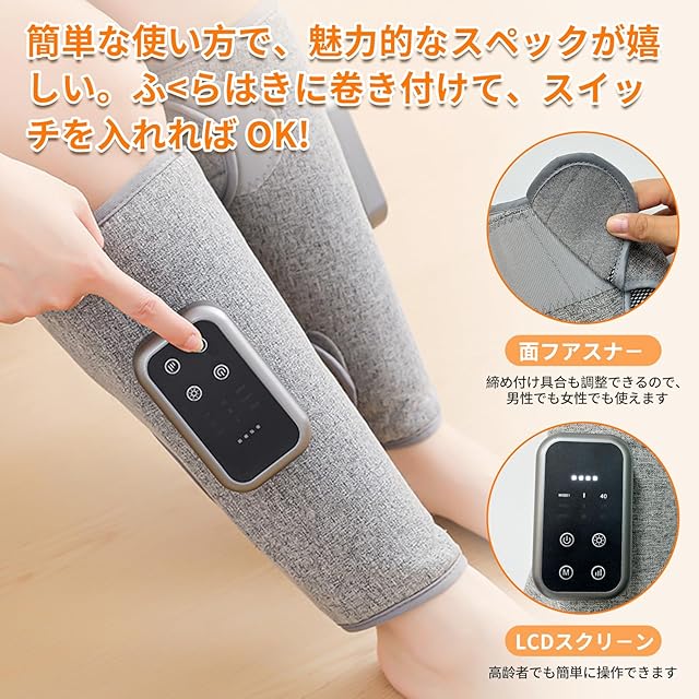 【充電式・コードレスデザイン】最大2時間連続作動可能の2000mAhの大容量長持ちバッテリーが内蔵。コードレス ふくらはぎの為、コンセントの近くにいる必要がなく場所を選ばずに使える。仕事中やテレビを見ながらでもどこでもリラックスできます。立ち仕事や座り仕事、横になっている時も場所を移動しても外さなくてもどんな姿勢でも使いやすいデザイン。装着したまま家事やトイレも可能なので実にコードレスがストレスフリーです。