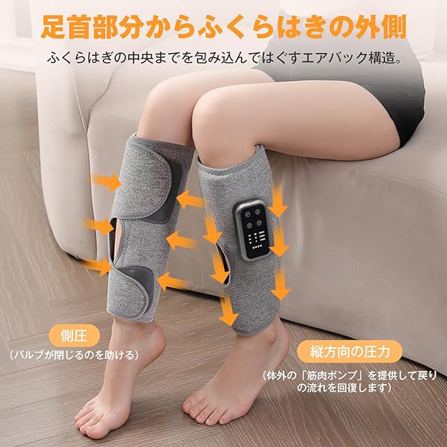 【2025新設計 ・ふくらはぎを全方位ケア】Cueyouのふくらはぎケアは人の指で押しているような感覚を再現します。従来品が圧力不足、生地が硬い、加圧モード単一の問題を徹底的に改良しました。本品が足首部分からふくらはぎの外側、ふくらはきの中央までを包み込んでもみほくす大面積エアバック構造で、エアバッグが交互に膨らみでふくらはぎの上下左右へ絞り上げ、ふくらはぎ全体360度カバーして人の手の揉みほぐしします。従来品より強力で効果的にふくらはぎケア。指圧のような心地よさと刺激を与え、15分だけ足スッキリします。